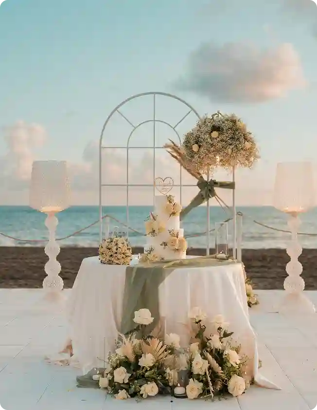 Vid de bröllop som vi organiserade uppfyllde vi alla önskemål. De unga anlände i lyxiga vagnar som drogs av vita hästar. Brudgummen kom ner till sin brud i en luftballong. Vi släppte hundratals vita duvor i luften. Oavsett hur djärvt ditt önskemål är, oavsett vilken underbar sak du vill ha på ditt bröllop, kan du lugnt berätta det för oss, så kommer vi att förverkliga din dröm.