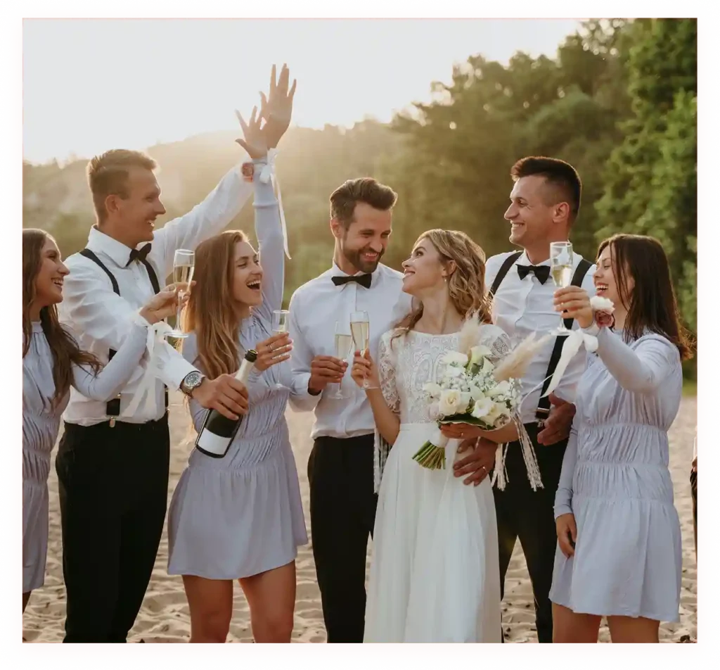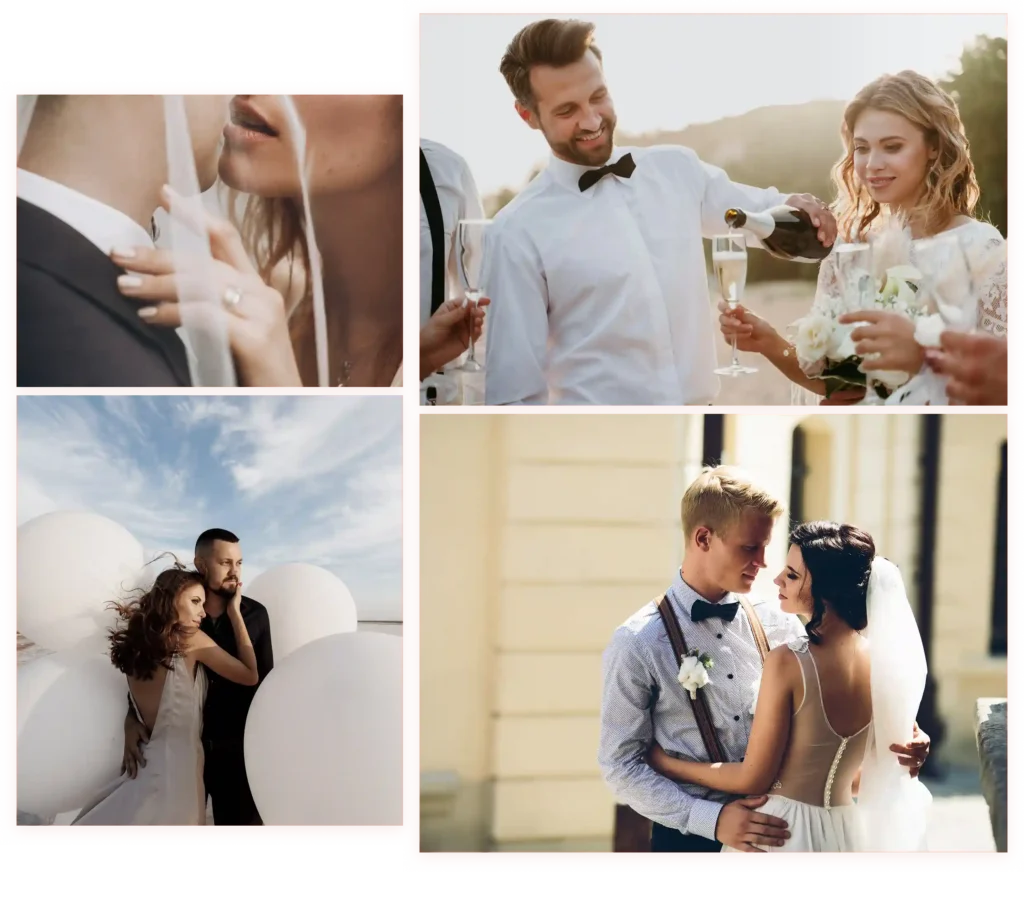 Endast människor som är djupt förälskade i sitt arbete kan organisera exklusiva bröllop. Vi lägger en del av vår själ i varje fest, och det känner alla som deltar i ceremonin och den efterföljande festen. Uppmärksamhet på detaljer, noggrant arbete, att göra resultatet perfekt – det är det som alltid har utmärkt vårt företag. Även om det uppstår några mindre problem under bröllopet märker varken det unga paret eller gästerna någonsin detta. Det är vårt företags huvuduppgift – bröllopet måste vara felfritt, och vi ser till att det blir så.